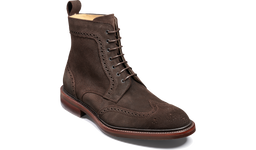 Calder er en robust brogue-støvel med vingehetter tilgjengelig i fire narvet lærfarger med Dainite gummisåle. Perfekt for landlige sysler eller en alternativ estetikk for smartere antrekk.